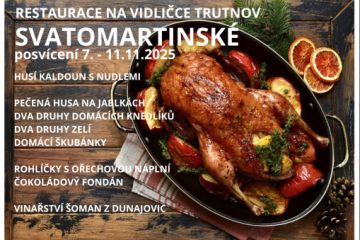 Zveme Vás na Svatomartinské pečené husičky po staročesku s domácími knedlíky a škubánky, husí kaldoun a také svatomartinské rohlíčky . Od pátku 7.11. do středy 11.11.2025